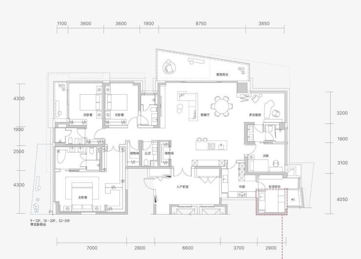 最强功能属性,可以做到4套房、5套房或6房+1保姆间的功能性