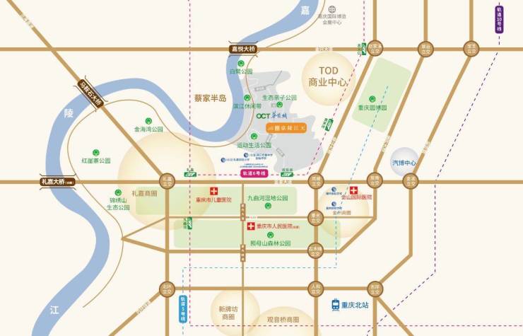 ?商业配套:社区商业,嘉陵江天集中商业,礼嘉天街集中商业