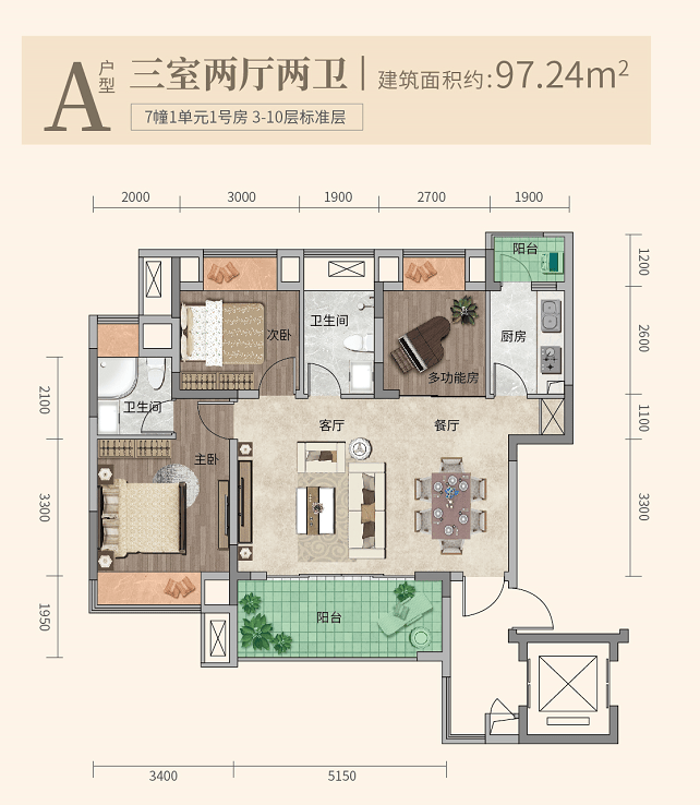 永缘·锦庭户型全为横厅设计,打造约6.75-7.1m宽阔横厅,与观景阳台串联构建成南北通透区域,高阶阔绰,待客有面子,居住舒适度高。