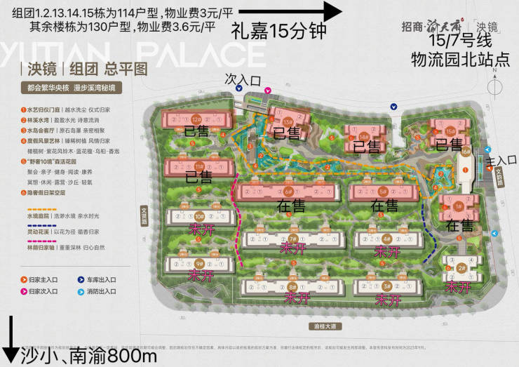 渝天府北区:总占地271亩,分一期小高林屿;二期小高溪屿组团在售;二期洋房泱镜组团在售。