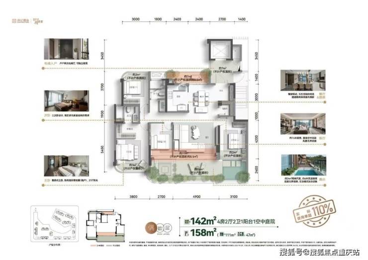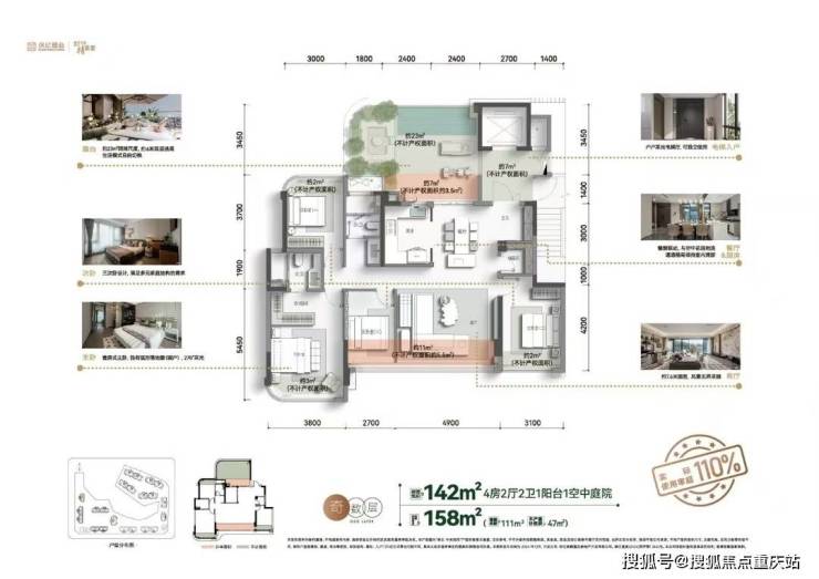 ❺户户带 6米挑高空中花园,最大赠送面积约 38㎡,实得率超100%