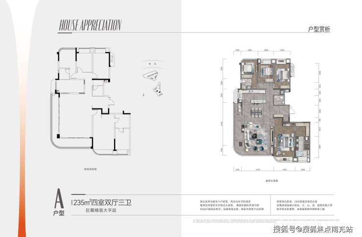 建面:235㎡(四房两厅三卫) 套内:210㎡ 精装