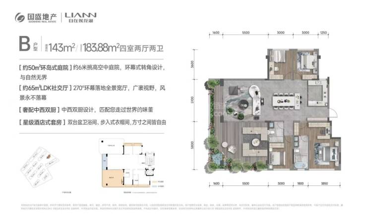 建面约143平套四