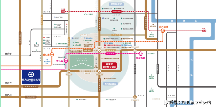 ✈️交通配套:“1机场4高铁3城际4快线3轨道8高速”,距离正兴国际机场约15km,一隧之隔直达科学城核芯金凤城市中心,距离市域铁路永川线(青杠站)约2.8公里。