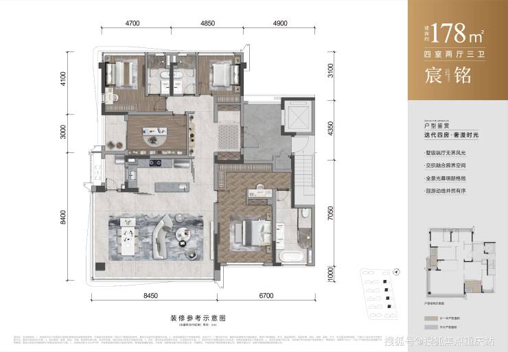 【户型】:约128㎡丨143㎡丨178㎡精装四房