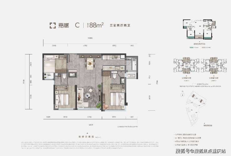 建面: 88/99㎡精装三房