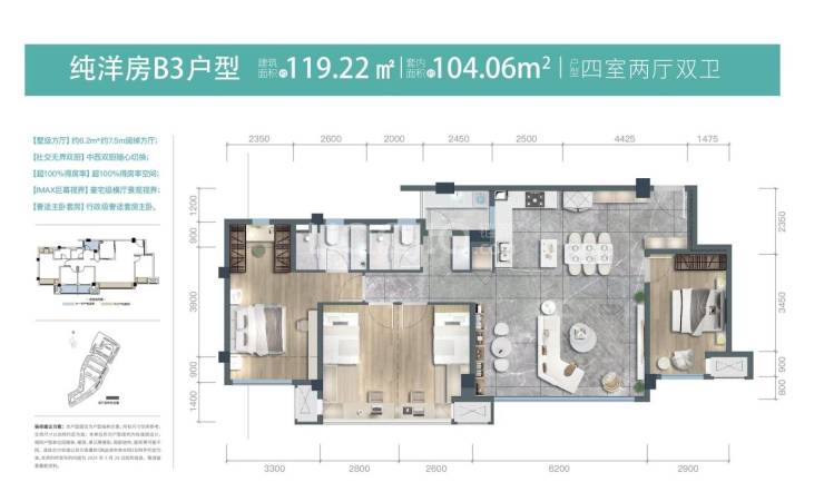 建面约119平套四