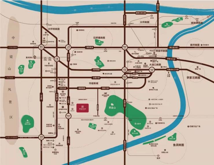 交通:项目位于华岩新城核心区,拥有“三横三纵一轻轨,一站一枢纽”的立体交通体系,临近5/18号线,二纵线,10分钟到西站,20分钟到沙坪坝,30分钟到江渝北