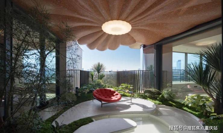 户型层面,建面约375㎡的主力户型在3.6米的层高里,拥有1个空中花园和3个生态阳台,阳台总面积达到了约53㎡,空中花园更做到了和展示样板间同频的交付标准。