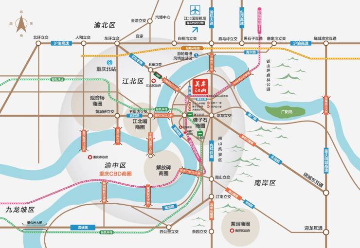 轨道衔接:近邻轨道交通网络,无缝接入主城核心通勤线路,快速通达观音桥、江北嘴等商圈,日常通勤与跨区出行便捷高效;