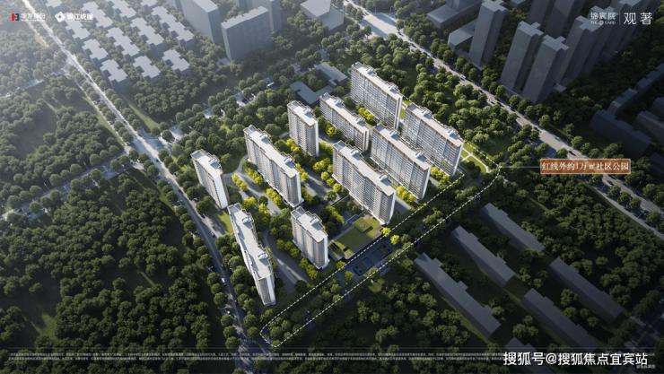 两侧分别有宽约30米和18米的公园绿地用地,和红线内景观一体化设计,与人行主入口和园林形成整体,约等于把2.1容积率降低到了1.66。