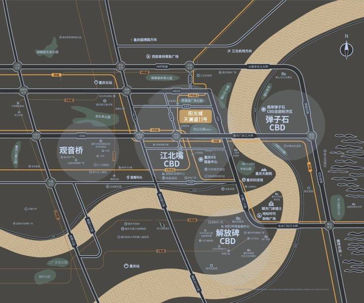 四桥纵横:黄花园大桥、千厮门大桥、朝天门大桥、大佛寺大桥四桥联动,自驾 10 分钟可达渝中半岛、南岸核心,畅联两江四岸;