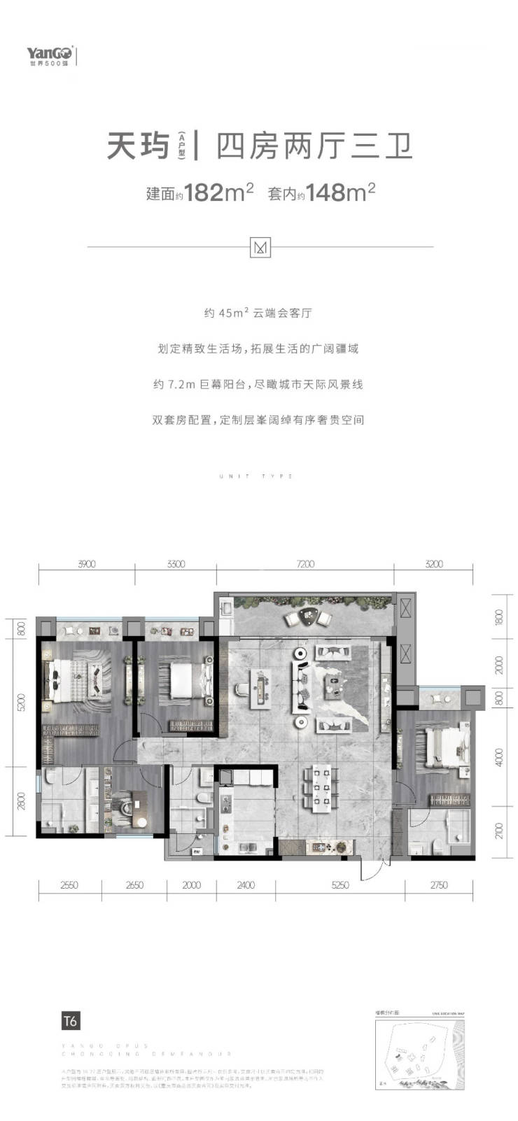 建面约182平套四