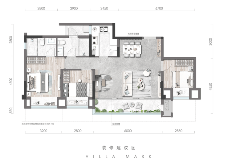 ❶建面:86-97 ㎡三房双卫 总价:62-104万