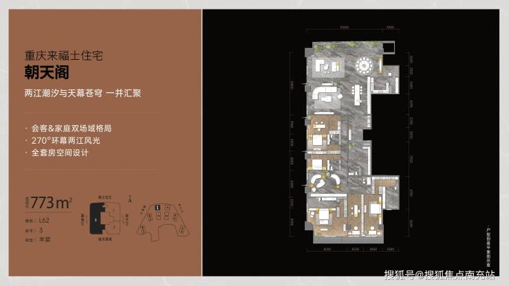 2、全球坐标住宅:350米世界高度,为重庆列席世界坐标之林,东半球最高住宅长江第一阁!凯德集团x摩西·萨夫迪瑰丽之作,汤臣一品同设计师梁志天、周迅同款明星御用私宅设计师周光明亲自操刀朝天阁交标、150年阅历P&T香港巴马丹拿、自由女神像灯光顾问BPI、悉尼歌剧院设计团队ARUP等全球30余顶尖设计天团,联袂钜作世界塔尖资产。