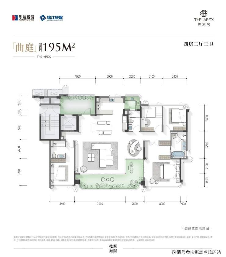 锦宸院洋房有195㎡、245㎡、248㎡、320㎡四个户型,限于篇幅这里重点介绍195㎡户型。