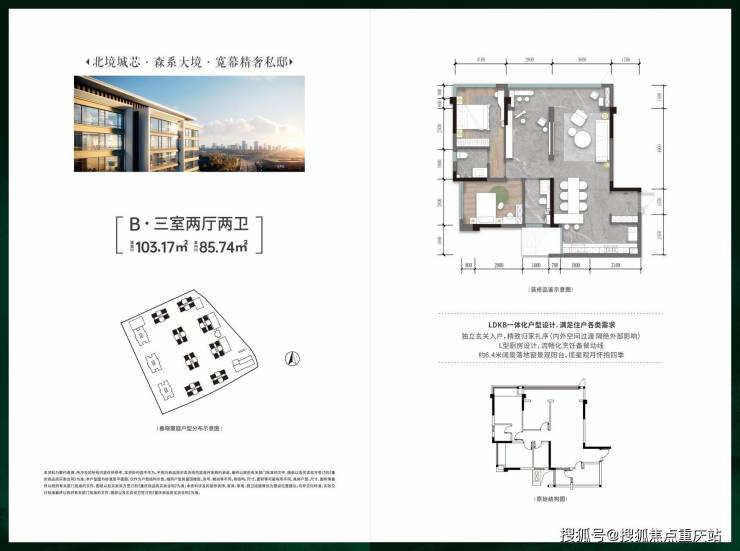 建面103㎡ 套内85㎡ 舒阔三房双卫
