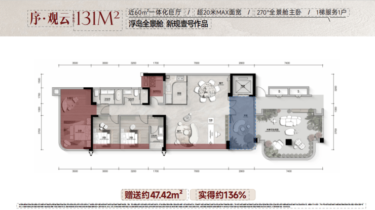 户型:建面 130/143/195/262㎡,143㎡起 2 梯 2 户板式;195/262㎡层高 3.5 米、客厅局部 7 米挑空;每层有 30-46㎡空中共享花园。
