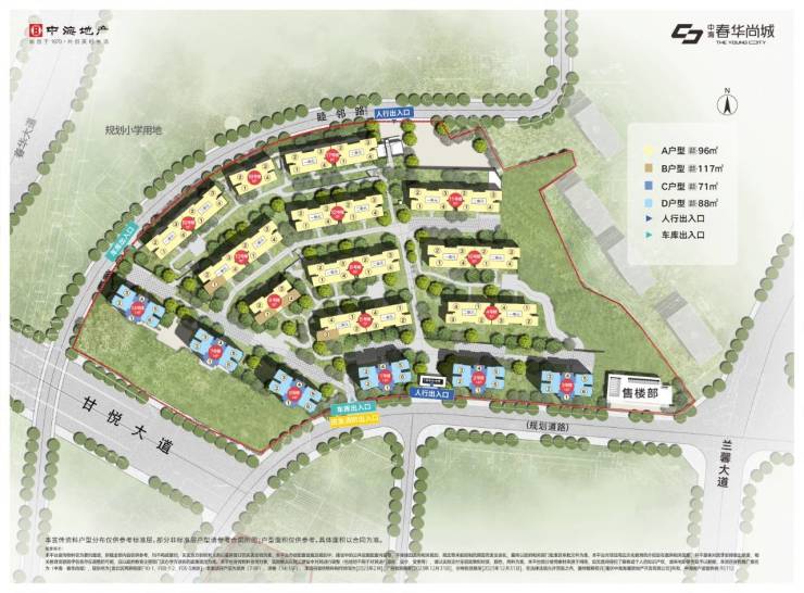 中海春华尚城项目总占地面积达201亩,分三期开发。其中,一期占地94.5亩,二期占地34.2亩,三期占地72.3亩。整体容积率为1.57。目前在售的一期住宅,设计总户数为1118户,车位配比为1:0.8,容积率为1.7。该期由6幢小高层和11幢洋房构成。小高层共14层,采用2T6H的设计;洋房总高8层,为1T4H的配置。