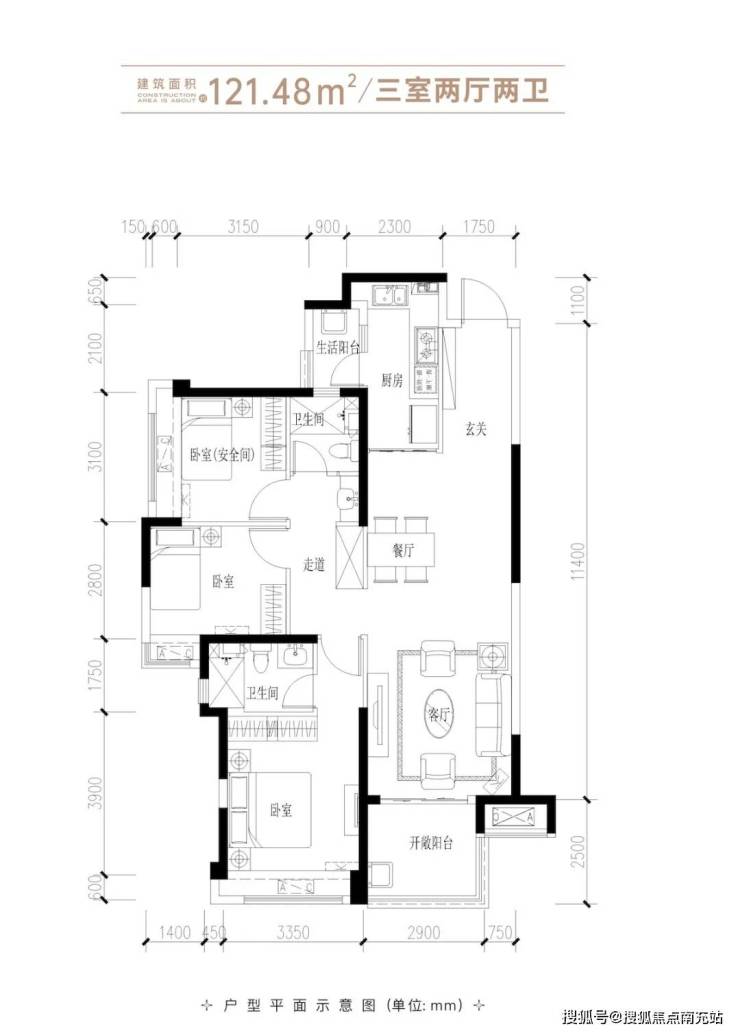 拿121户型来说,竖厅设计、进深超过10m,但开间只有6m出头,阳台只有约2.9m;两个次卧面积都不足10㎡,整体相对紧凑、无太多浪费空间。