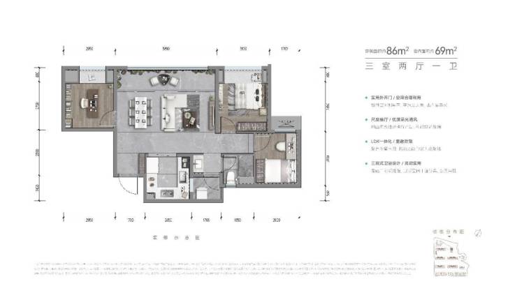 建面约86平套三