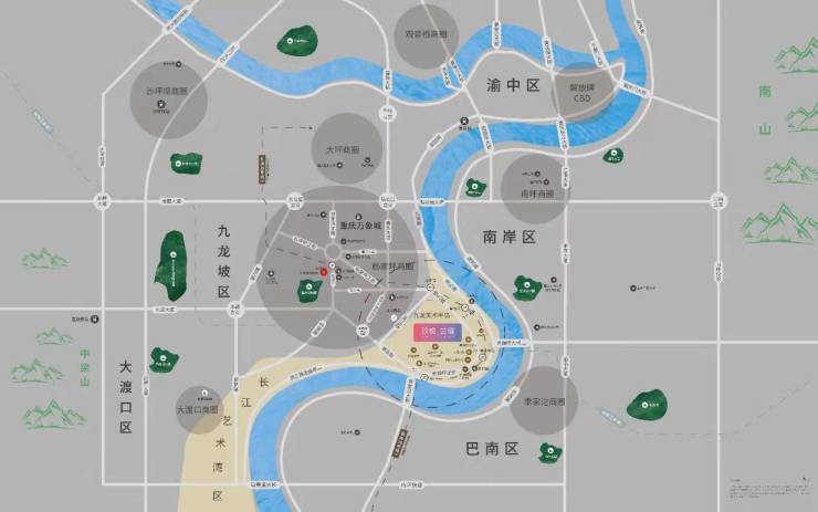【公园】重庆美术公园(打造中)、交通茶馆、涂鸦街、喜马拉雅书店、501艺术基地、五洲世纪文化智慧创意中心。