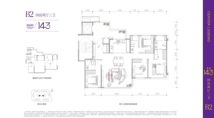 建面约143㎡的户型,给到了三种解决方案,加上入户光厅的使用面积,实际得房率都在105%以上,且空间布局合理,都做到了四房三卫,均有实现客厅或主卧的270°环幕采光。不论是143户型,还是120户型,都可圈可点,基本上步入了第一梯队的行列。