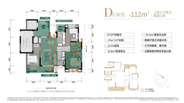 近7m奢幕阳台 从容收揽四季:约7米宽绰景观阳台+生活阳台,南北双面观景采光,从容达观。