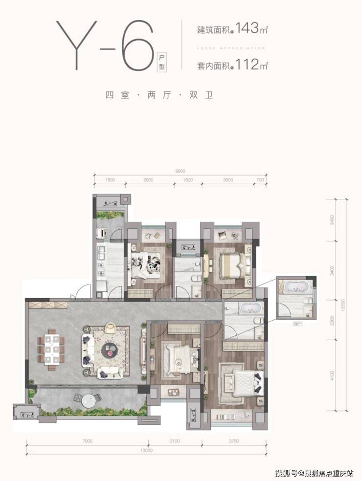 在售户型:建面143 套内112