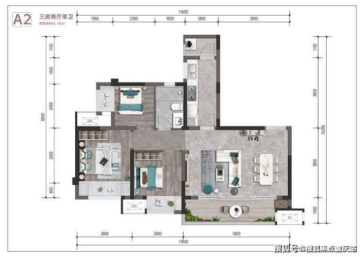 1#2#3#6#,2梯4户,总高16楼,一楼架空。面积:78-89㎡
