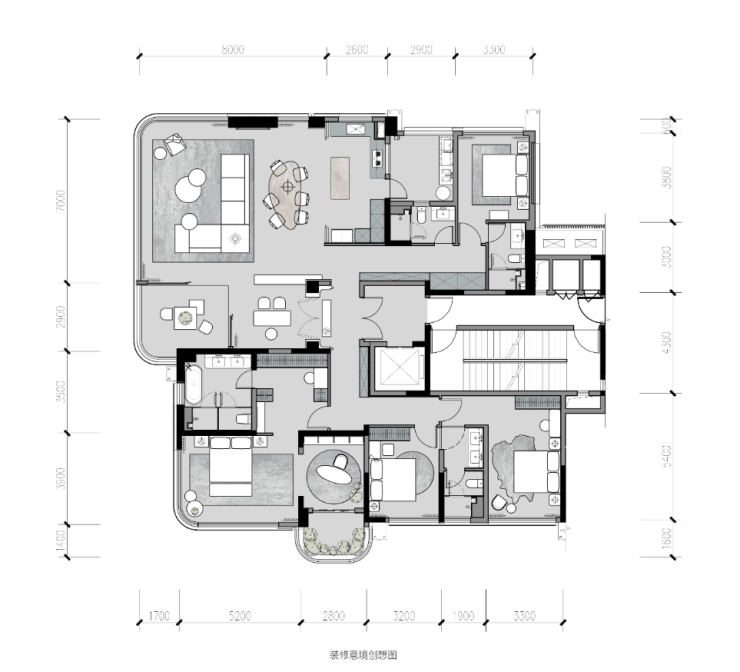 其中,作为华宸府顶豪场景「私享实践」的建面约253㎡顶配户型,其设计重点是将私人领域与公共领域彻底分离,把空间拆分为会客区与休闲区,既保证隐私,又满足不同场景需求。