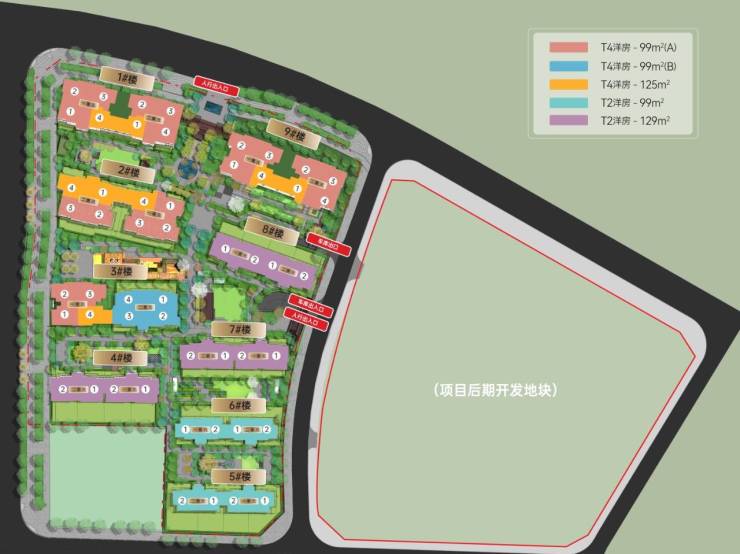 春月锦庐是我们绿城在中央公园打造的既春溪雲庐之后的又一极致低密人居社区,今后会和春溪雲庐一起营造“中央公园,更优越的绿城独有生活方式”。项目位于中央公园北,是我们绿城在中央公园打造的低密人居社区第二个项目。项目总占地约47374㎡,总建面约99420.03㎡,共分为东西2个地块进行开发,西地块均为洋房容积率1.76,东地块规划未定。首期我们推出的是西地块的1、9#楼,T4的洋房,西地块占地25426㎡,总建筑面积63583.05平米, 由4栋T4、5栋T2洋房组成,总户数404户,户型约为99-125㎡,车位比约为1:1.20
