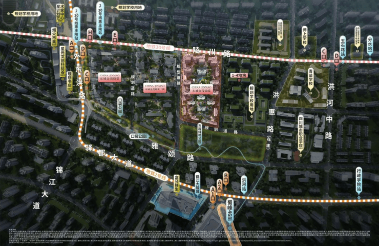 与东城金茂晓棠1、2期相比,东城金茂锦棠位置远离次主干道,周边有惠王陵、玉石、洪河3个地铁站,南侧是待建的113亩市政公园,北侧近成都师范附小领办的东洪分校,生态与书香一步到位。