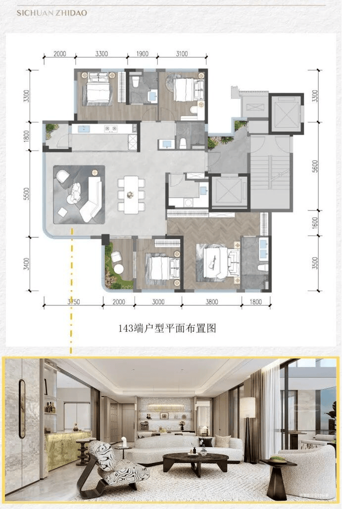 143㎡端厅/颂曜:在这个面积段就做到了客厅的环幕视野和双套房。入户光厅、生活阳台、景观阳台各居其位,其中一个次卧可以按需设计空间。
