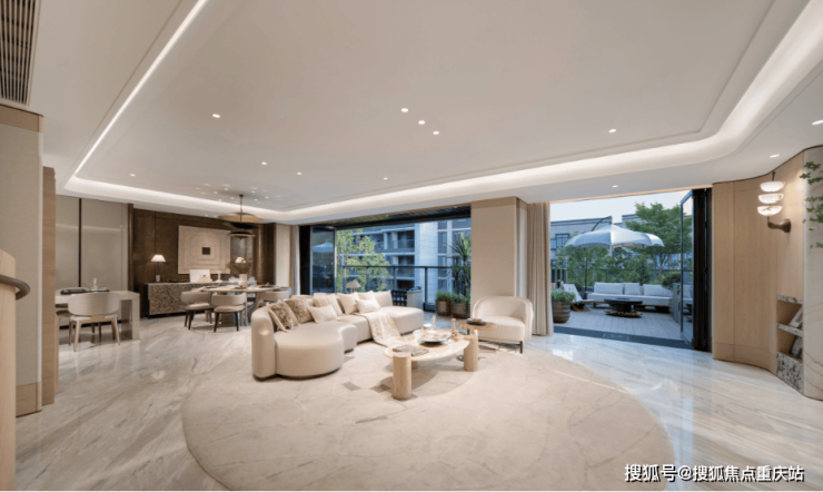 上叠首层面积约150平,采用了无柱化和零卧室设计,约66平的客餐厅和超总面积超40平方米的双露台,不仅兼得了大平层的空间感,又有了别墅的户外亲和力,是一个家庭的超级社交场域。