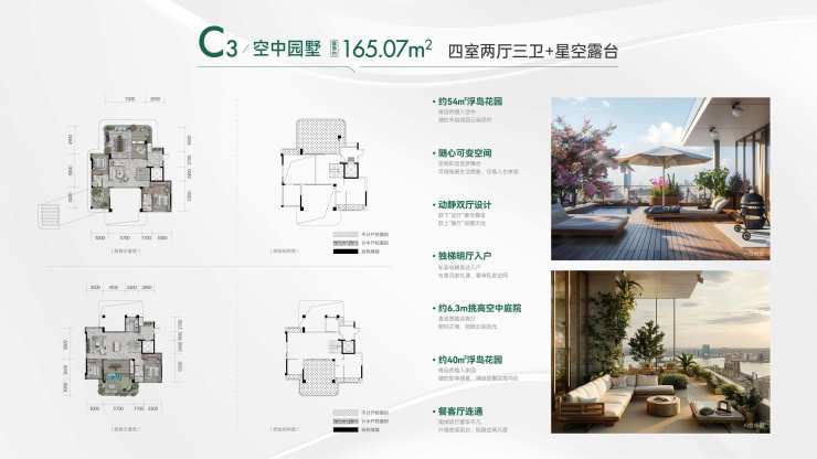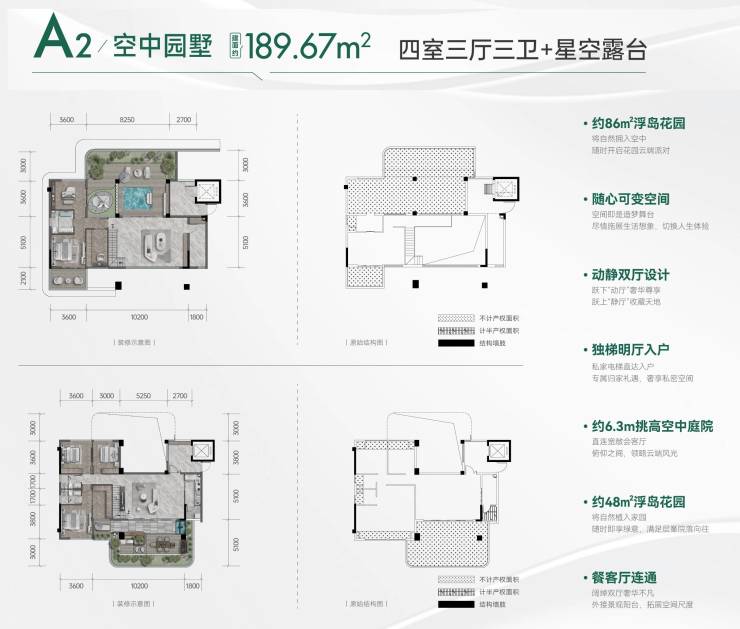 顶跃户型166-173-206㎡,实得290-380㎡,