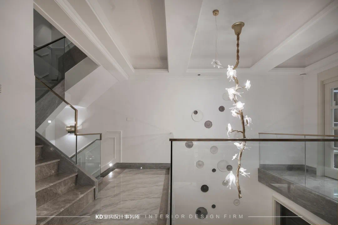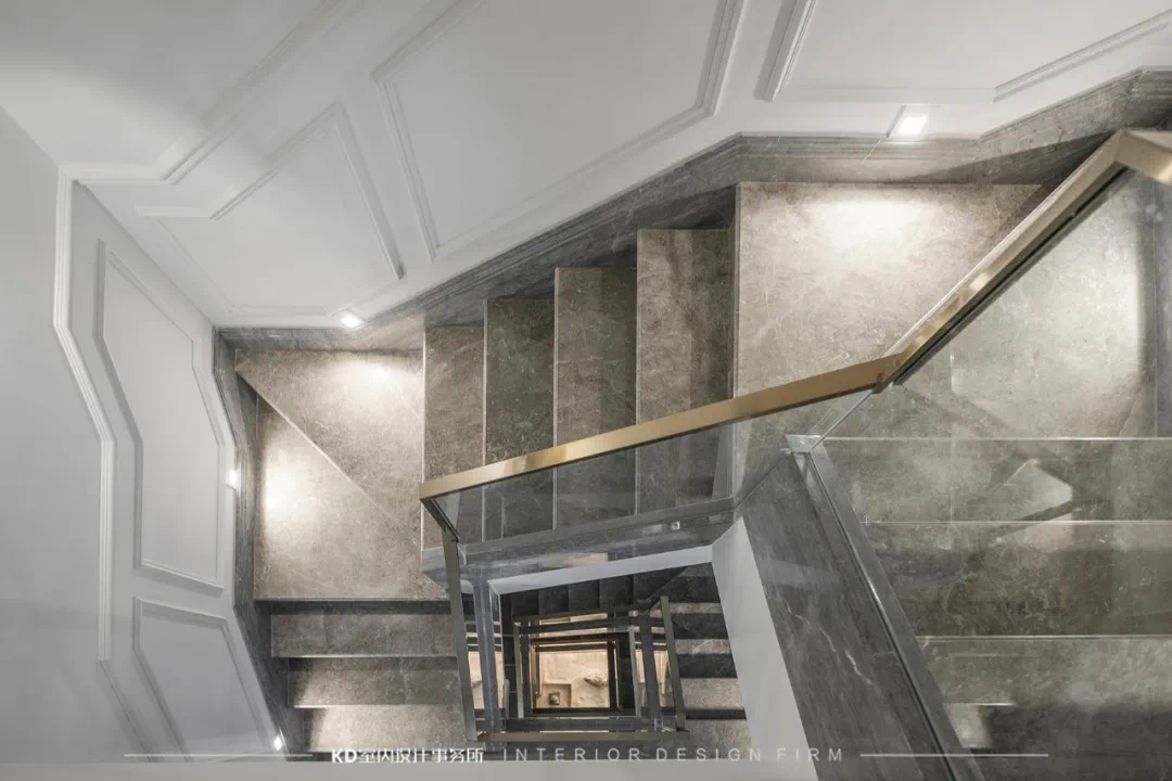 优秀的私宅设计中,楼梯的设计也是非常有讲究的。楼梯不仅仅是连接上下层的通道,更是一个舒适独立的空间。