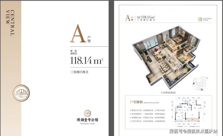 建面约118平套三