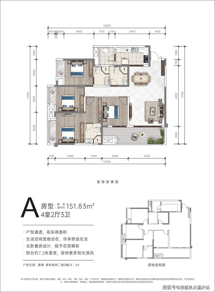 【在售户型】:建面约144/151/157㎡四房【物业管理费】:1.3元/㎡/月