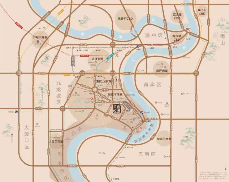 半山悦景与万象城直线距离约2km