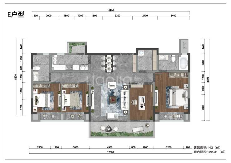 建面约142平套四
