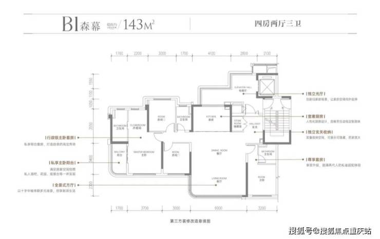 高投「启鸣」系为全T2板式四房、搭配10多个平方的入户光厅的设计,且全系架空层,拥有超高得房率,户型区间为约120-143㎡。