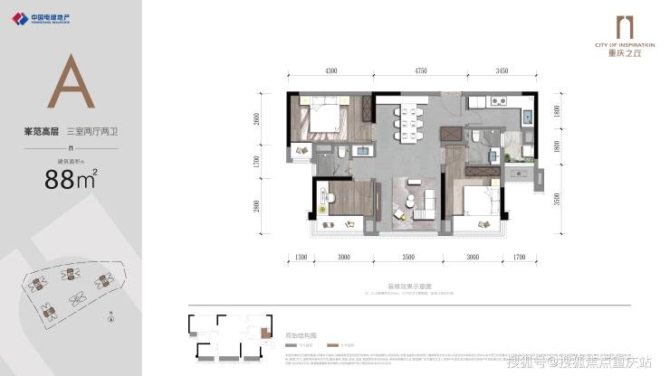 建面约88㎡——区域独有产品:低总价、⼩⾯积、强功能