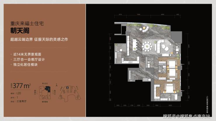 2、全球坐标住宅:350米世界高度,为重庆列席世界坐标之林,东半球最高住宅长江第一阁!凯德集团x摩西·萨夫迪瑰丽之作,汤臣一品同设计师梁志天、周迅同款明星御用私宅设计师周光明亲自操刀朝天阁交标、150年阅历P&T香港巴马丹拿、自由女神像灯光顾问BPI、悉尼歌剧院设计团队ARUP等全球30余顶尖设计天团,联袂钜作世界塔尖资产。