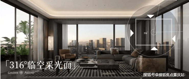 麓湖|金麟樾压缩承重墙占比,实现核心空间约316°临空采光面。