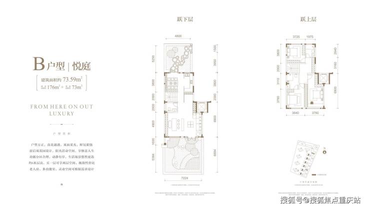 建筑面积约73.59㎡,实际使用面积约176㎡,花园面积约73㎡。