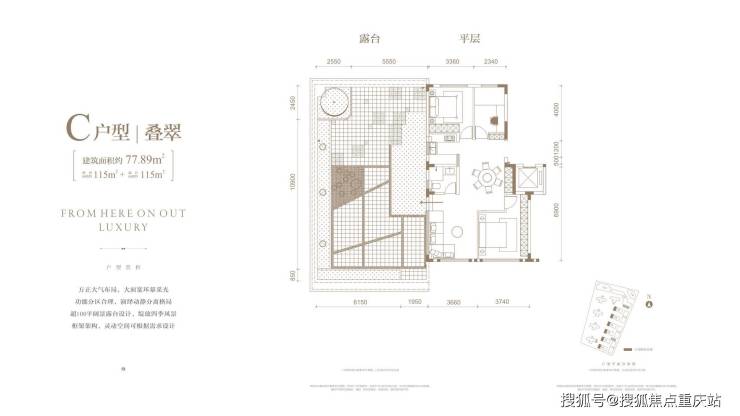 建筑面积约77.89㎡,实际使用面积约115㎡,露台面积约115㎡。