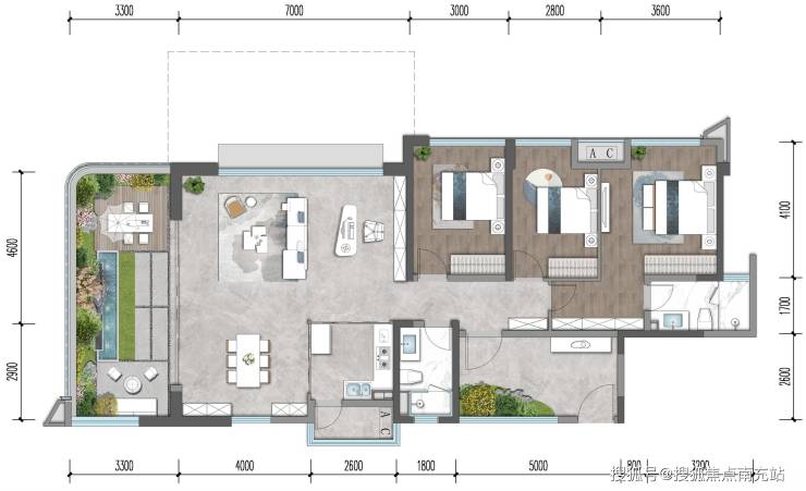 · 超大横厅直连+空中花园,尊享墅级舒居尺度;
