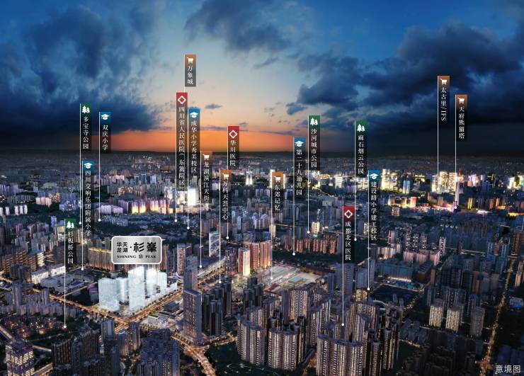 教育:12所大学校-嘉祥,成都七中英才,成都英华,二仙桥学校,万汇学校,理工大学,理工附属中学等