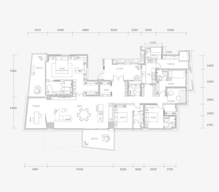 小面积最强功能性,可定制5房或4房+独立书房,并且其中包含3套房